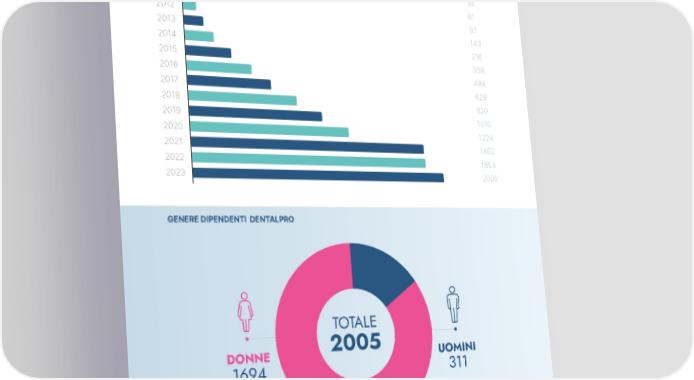 ANNUAL REPORT 2023 _Highlights DIPENDENTI DENTALPRO 2010 34 2011 61 2012 97 2013 143 2014 216 2015 339 2016 484 2017 628 2018 820 2019 1016 2020 1224 2021 1850 2022 1853 2023 2005 GENERE DIPENDENTI DENTALPRO TOTALE DONNE 2005 UOMINI 1694 311 24
