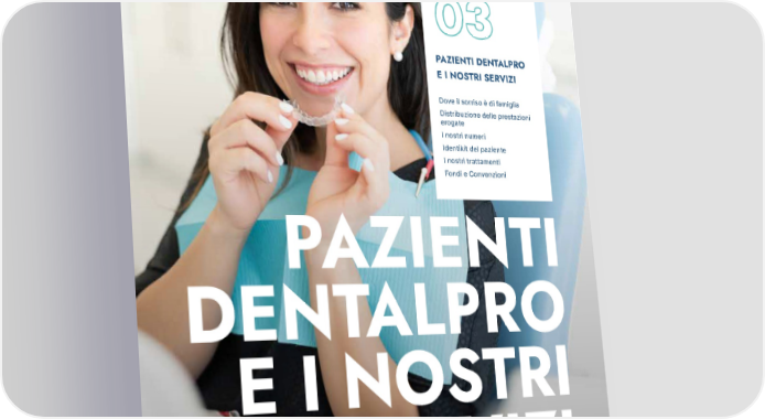 ANNUAL REPORT 2023 _Gruppo DentalPro 033 PAZIENTI DENTALPRO E I NOSTRI SERVIZI Dove il sorriso รจ di famiglia Distribuzione delle prestazioni erogate I nostri numeri Identikit del paziente I nostri trattamenti Fondi e Convenzioni PAZIENTI DENTALPRO E I NOSTRI SERVIZI 32