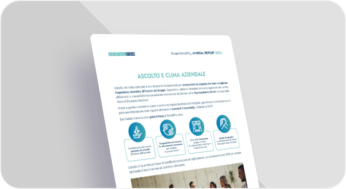 57 Gruppo DentalPro_ ANNUAL REPORT 2024 Essere parte di DentalPro significa entrare in una realtà dinamica e stimolante, dove la crescita personale e pro- fessionale è una priorità. Il nostro impegno è quello di offrire a ogni dipendente strumenti, formazione e opportu- nità per eccellere, contribuendo a un ambiente di lavoro positivo e orientato all’innovazione. Con il contributo di tutti, continuiamo a costruire un futuro solido e ricco di opportunità per l’intero team DentalPro. L’analisi del clima aziendale è uno strumento fondamentale per comprendere le esigenze del team e migliorare l’esperienza lavorativa all’interno del Gruppo. Quest’anno, abbiamo introdotto un nuovo approccio alla survey, affidandoci a una piattaforma specializzata riconosciuta da Gartner come Representative Vendor nel segmento Voice of Employee Solutions. Grazie a questa innovazione, siamo riusciti a raccogliere feedback più dettagliati, garantendo al contempo la com- pleta anonimizzazione delle risposte attraverso il metodo K-5 Anonimity, conforme al GDPR. Dai risultati è emerso che i punti di forza di DentalPro sono: ASCOLTO E CLIMA AZIENDALE CRESCERE INSIEME: IL NOSTRO FUTURO Soddisfazione del proprio percorso di crescita all’interno dell’azienda. Tempestività nel ricevere le informazioni necessarie per svolgere le proprie attività. Utilità della formazione erogata in ottica di miglioramento del proprio modo di lavorare. Spirito di squadra e coinvolgimento all’interno del proprio team di lavoro. L’analisi ci ha anche permesso di identificare nuove aree di miglioramento, su cui lavoreremo nel 2025 per rendere l’ambiente di lavoro sempre più positivo e stimolante.