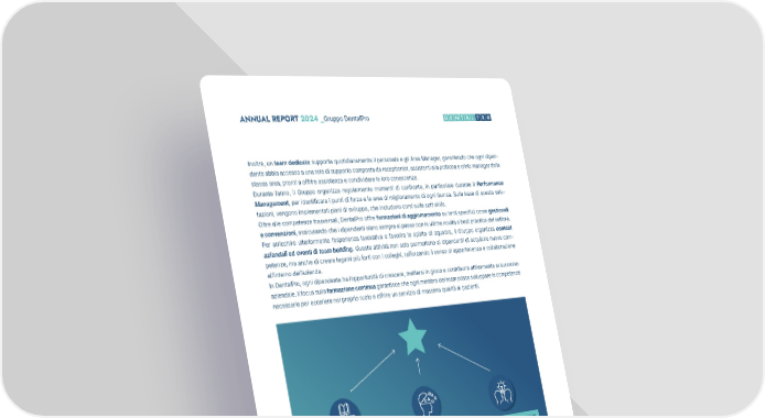 54 ANNUAL REPORT 2024 _Gruppo DentalPro Inoltre, un team dedicato supporta quotidianamente il personale e gli Area Manager, garantendo che ogni dipen- dente abbia accesso a una rete di supporto composta da receptionist, assistenti alla poltrona e clinic manager della stessa area, pronti a offrire assistenza e condividere le loro conoscenze. Durante l’anno, il Gruppo organizza regolarmente momenti di confronto, in particolare durante il Performance Management, per identificare i punti di forza e le aree di miglioramento di ogni risorsa. Sulla base di queste valu- tazioni, vengono implementati piani di sviluppo, che includono corsi sulle soft skills. Oltre alle competenze trasversali, DentalPro offre formazioni di aggiornamento su temi specifici come gestionali e convenzioni, assicurando che i dipendenti siano sempre al passo con le ultime novità e best practice del settore. Per arricchire ulteriormente l’esperienza lavorativa e favorire lo spirito di squadra, il Gruppo organizza contest aziendali ed eventi di team building. Queste attività non solo permettono ai dipendenti di acquisire nuove com- petenze, ma anche di creare legami più forti con i colleghi, rafforzando il senso di appartenenza e collaborazione all’interno dell’azienda. In DentalPro, ogni dipendente ha l’opportunità di crescere, mettersi in gioco e contribuire attivamente al successo aziendale. Il focus sulla formazione continua garantisce che ogni membro del team possa sviluppare le competenze necessarie per eccellere nel proprio ruolo e offrire un servizio di massima qualità ai pazienti. CORSI DI AGGIORNAMENTO FORMAZIONE APPRENDISTI HARD SKILLS GESTIONALI COACHING SOFT SKILLS PERFORMANCE MANAGEMENT WEBINAR E-LEARNING TRAINING ON THE JOB E DENTALPRO TRAINING HUB TEAM BUILDING CLINIC MANAGER DAY CONTEST PIANI DI SVILUPPO INDUCTION INIZIATIVE DI ENGAGEMENT