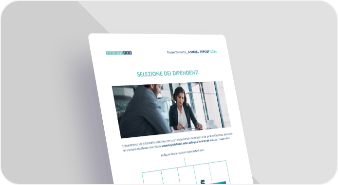 49 Gruppo DentalPro_ ANNUAL REPORT 2024 Il dipartimento HR di DentalPro seleziona con cura i professionisti che entrano a far parte dell’azienda, attraverso un processo strutturato che include screening telefonici, video colloqui e incontri dal vivo con i responsabili. SELEZIONE DEI DIPENDENTI RECEPTIONIST RESPONSABILI ASSISTENZA PAZIENTI RECEPTIONIST COORDINATOR CLINIC MANAGER ASSISTENTI DI STUDIO ODONTOIATRICO CUSTOMER BASE MANAGER 1 3 2 4 5 6 Ogni percorso di selezione e onboarding è studiato per garantire un inserimento efficace e una crescita professio- nale solida. Le figure chiave nei centri odontoiatrici sono: