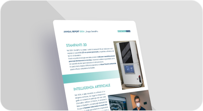 30 ANNUAL REPORT 2024 _Gruppo DentalPro Nel 2024, DentalPro ha dotato i centri di stampanti 3D per realizzare e con- segnare ai pazienti in 2/3 ore protesi provvisorie, progettate a distanza dai tecnici di laboratorio. Grazie a questa tecnologia avanzata possiamo realizzare manufatti protesici provvisori direttamente in struttura, riducendo le attese e garantendo ai no- stri pazienti soluzioni personalizzate e di alta precisione. In questo modo migliora l’efficienza operativa e si riduce l’impatto ambientale grazie al flusso completamente digitale. Nel 2024, è stato introdotto un software di in- telligenza artificiale, che legge le ortopantomo- grafie ed evidenzia le patologie del cavo orale. L’innovativo software di Allisone, in esclusiva in Italia con DentalPro, consente agli odontoiatri del Gruppo di illustrare visivamente e in modo inte- rattivo le diagnosi, aumentando la comprensione del paziente sulla condizione dei propri denti e facilitando così l’adesione ai trattamenti proposti. Grazie alle sue funzionalità avanzate, la piatta- forma permette di generare report radiografici, creare velocemente piani di trattamento perso- nalizzati per ogni paziente e collegare le schede educative ai report radiografici, migliorando l’ef- ficacia della comunicazione dentista-paziente. Dopo averlo testato e avere riscontrato risultati molto positivi, DentalPro ha esteso l’applicazione ad altri centri. Una parte del Gruppo utilizza que- sta tecnologia che, grazie all’AI, aiuta gli odon- toiatri a ottenere diagnosi ancora più precise e specifiche per le esigenze dei pazienti. DentalPro ha introdotto un innovativo trattamento per la cura di carie in fase iniziale e white spots, senza l’utilizzo della turbina: la rigenerazione dello smalto. Questa soluzione non invasiva è in grado di stimolare la ricostituzione dei minerali persi nello smalto e di riparare il dente dall’interno, migliorare il comfort del paziente e, oltre a rinforzare i denti, offre una protezione prolungata contro l’evoluzione delle lesioni cariose. STAMPANTI 3D INTELLIGENZA ARTIFICIALE TRATTAMENTO DELLA CARIE IN FASE INIZIALE